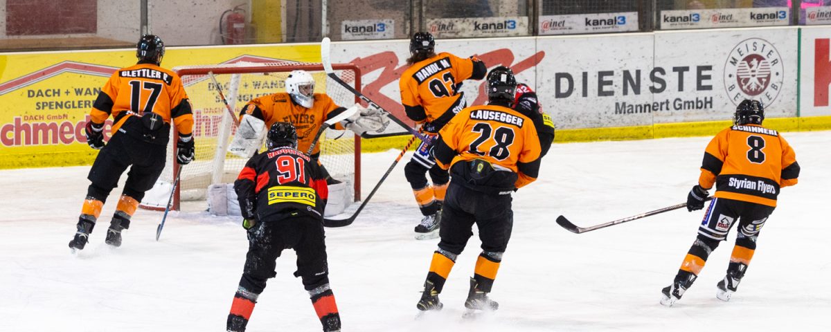 Diese Best-of-Three-Serie im Halbfinale hatte es in sich. Spiel eins verloren die Deutschfeistritz Flyers deutlich mit 1:8 gegen die St. Peterer Haie. In Spiel zwei gewannen die Flyers auswärts nach Penaltyschießen mit 3:4. Und im entscheidenden dritten Spiel setzten sich die Deutschfeistritzer mit 2:1 gegen die St. Peterer durch.